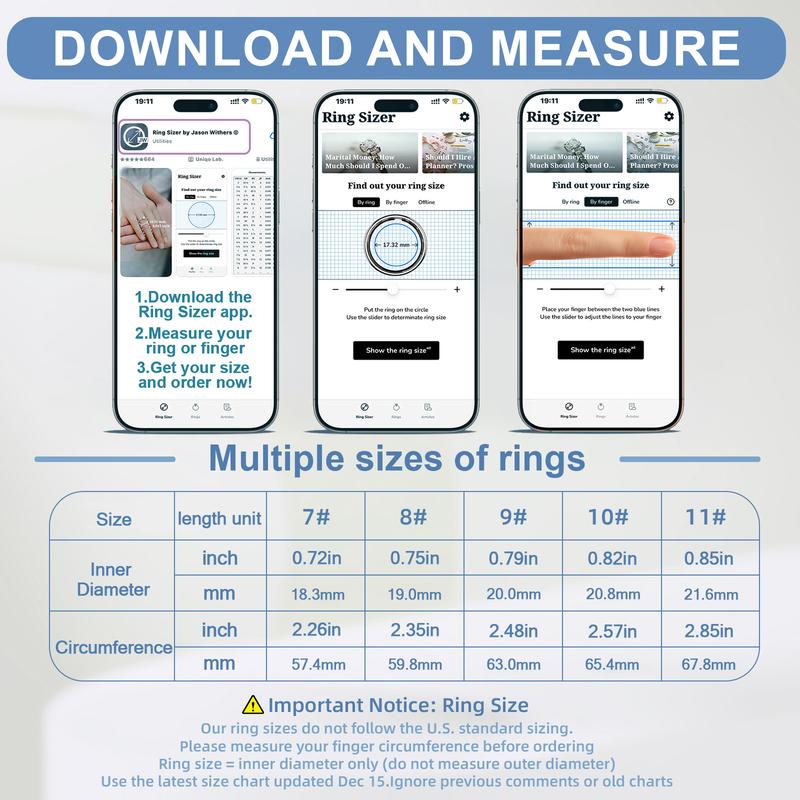 Find Your Perfect Fit Easily: Download the Ring Sizer app to measure your finger or an existing ring. Simply follow the app’s instructions to ensure your ring fits perfectly every time!”