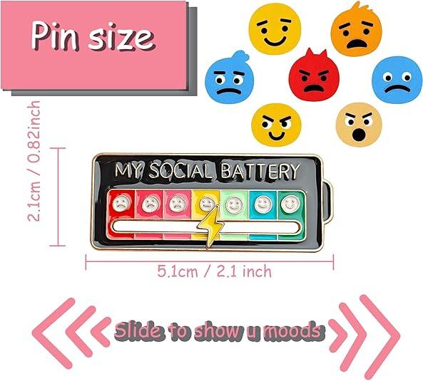 Social Battery Pin - Slider Pins for Introverts, Funny Interactive Mood Pins for Jackets & Backpacks - Novelty Cowboy Accessories for Men, Cute Gifts for Girlfriend, Wife, Her [Novelty Accessories]