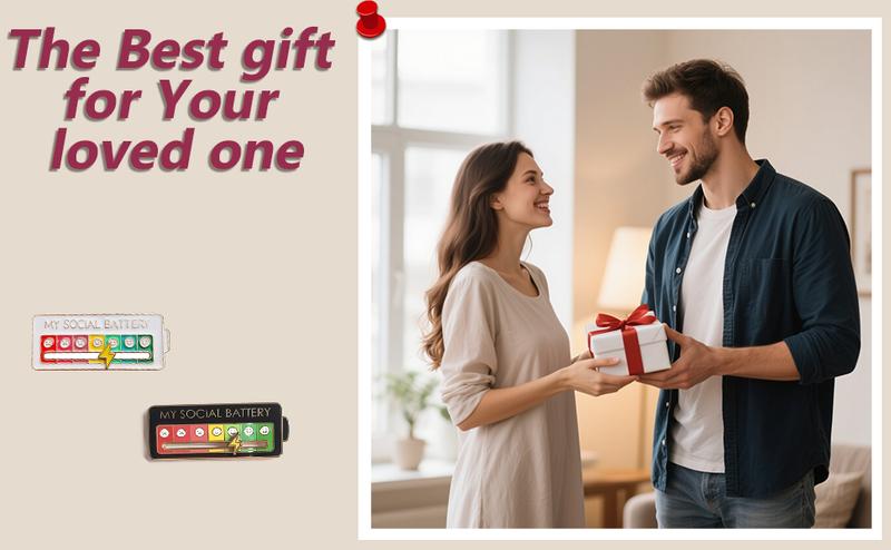 A sleek lapel pin showing your SOCIAL BATTERY level (Full, Low, Dead). Your visual "Do Not Disturb" sign for deep work.